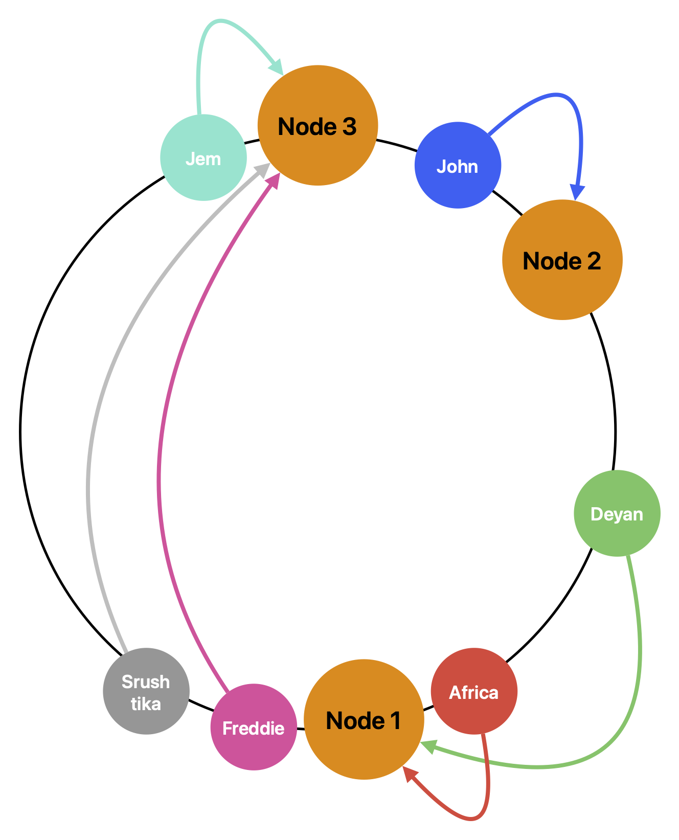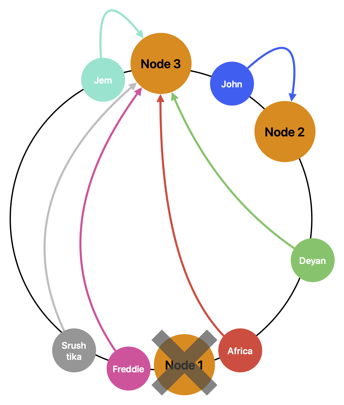 3번 노드가 삭제되기 전, Jem 이라는 데이터는 3번 노드가 가장 가까운 버킷이었기에 3번 노드가 이 데이터를 관리했다.